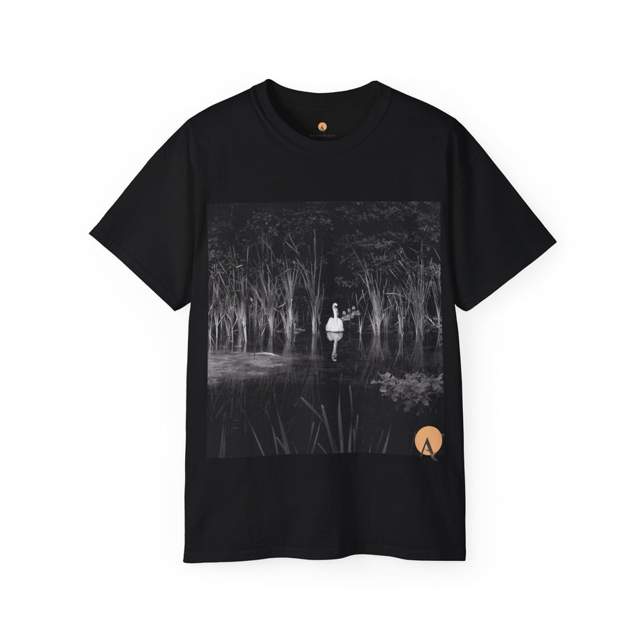 Start your day with the peaceful beauty of nature. This Swan and Cygnets at Sunrise t-shirt captures a heartwarming moment of an adult swan gracefully leading her cygnets across a tranquil lake as the morning sun casts a golden glow. A perfect blend of elegance and serenity, this design is ideal for nature lovers, wildlife enthusiasts, and those who appreciate the quiet strength of the natural world.